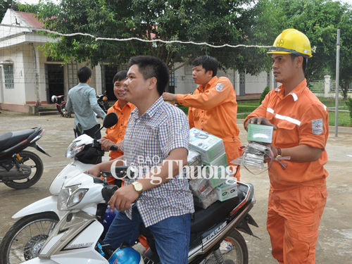 | Nhân viên Điện lực Tân Uyên chuyển quà hỗ trợ |