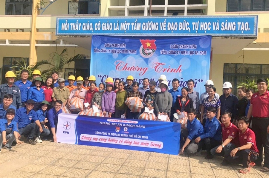 Đoàn Thanh niên Tổng công ty Điện lực TP. Hồ Chí Minh (EVNHCMC) vừa cùng Đoàn Thanh niên Tổng công ty Điện lực Miền Trung (EVNCPC) hoàn thành chuyến công tác xã hội tại xã A Xan, huyện Tây Giang, tỉnh Quảng Nam và trường THCS Hành Thiện, huyện Nghĩa Hành, tỉnh Quảng Ngãi với hàng trăm phần quà và nhiều hiện vật thiết yếu để giúp đồng bào sớm khắc phục thiệt hại sau bão lũ, khôi phục cuộc sống.