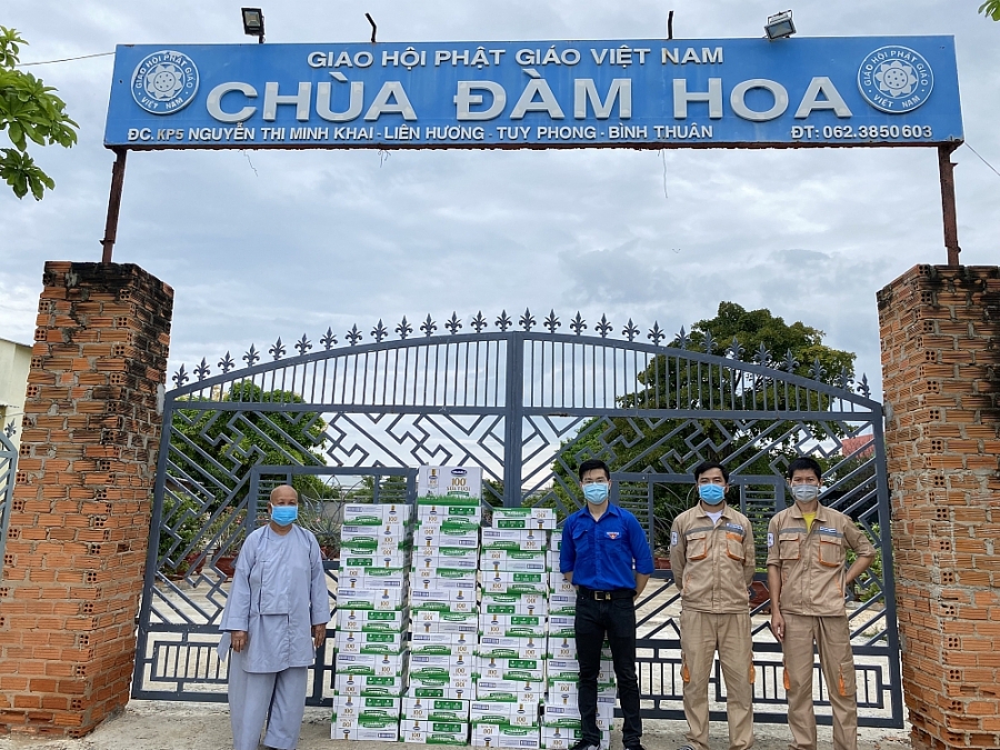 Tổng số phần quà kể trên được BCH Đoàn TNCS Nhà máy vận động từ các đoàn viên thanh niên là cán bộ, người lao động các Chi đoàn trong Nhà máy. Với các gia đình khó khăn chịu ảnh hưởng của dịch Covid-19 ở xã Phước Thể, Đoàn TNCS Nhà máy đã phối hợp với Hội chữ thập đỏ của huyện Tuy Phong để trao tặng, còn đối với các bạn nhỏ có hoàn cảnh đặc biệt ở Chùa Đàm Hoa, Đoàn TNCS Nhà máy đã tận tay mang những phần quà là tấm lòng của các đoàn viên thanh niên Nhà máy đến trao tặng, tất cả các hoạt động đều đảm bảo 5K.