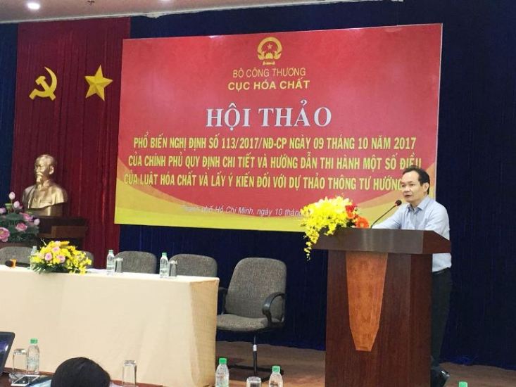 Nhằm triển khai thực hiện Nghị định 113, hôm nay (10/11/2017), tại TP. Hồ Chí Minh, Cục Hóa chất (Bộ Công Thương) đã tổ chức “Hội thảo phổ biến Nghị định số 113/2017/NĐ-CP và lấy ý kiến đối với Dự thảo Thông tư hướng dẫn”.