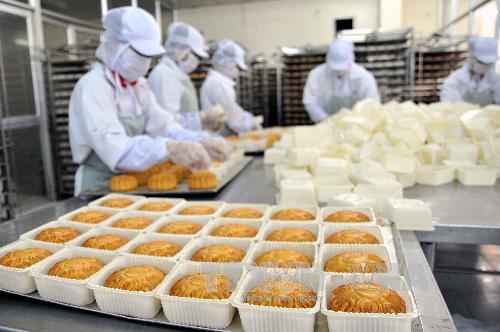 | Dây chuyền sản xuất bánh Trung Thu của Bibica. Ảnh: An Hiếu/TTXVN |