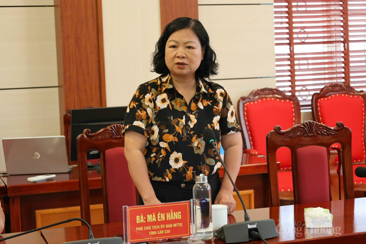 | Bà Mã Én Hằng - Phó Chủ tịch Uỷ ban Mặt trận Tổ quốc Việt Nam tỉnh Lào Cai gửi lời cảm ơn chân thành tới đoàn công tác của Báo Công Thương, Câu lạc bộ Doanh nhân họ Phan và thân hữu cùng các nhà hảo tâm đã chia sẻ kịp thời những khó khăn, mất mát mà bà con trên địa bàn tỉnh vừa trải qua. Ảnh: Đỗ Nga |