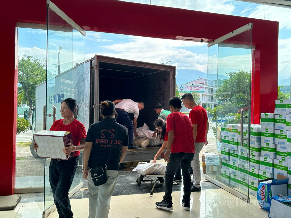 | Công ty Cổ phần Giao Hàng Tiết Kiệm cũng tài trợ miễn phí xe tải chở hàng phục vụ đoàn công tác. Ảnh: Đỗ Nga |