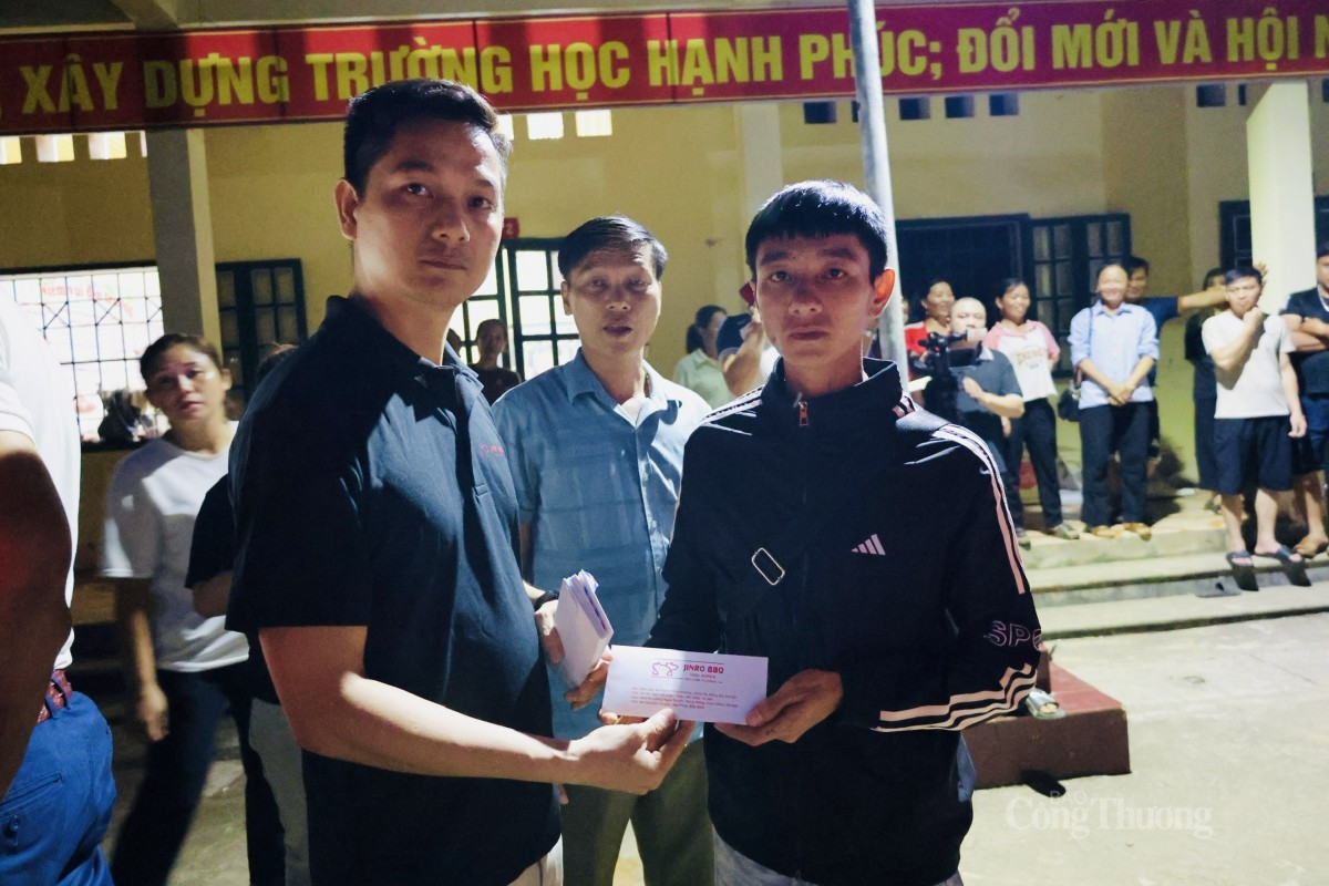 | Triển khai chương trình “Chung tay hỗ trợ đồng bào vùng lũ lụt” do Báo Công Thương phát động nhằm quyên góp, hỗ trợ, giúp đỡ các gia đình gặp nạn do mưa lũ sớm vượt qua khó khăn, ổn định cuộc sống, ngày 18/9, đoàn công tác do Báo Công Thương làm Trưởng đoàn đã phối hợp với Câu lạc bộ Doanh nhân họ Phan và thân hữu cùng các nhà hảo tâm trao quà tại Lào Cai - một trong những tỉnh chịu ảnh hưởng nặng nề do bão. Ảnh: Đỗ Nga |