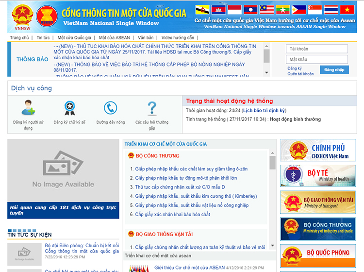 Theo đó, Cục Hóa chất (Bộ Công Thương) đã phối hợp với Tổng cục Hải quan xây dựng hệ thống khai báo tại Cổng thông tin một cửa quốc gia (tại địa chỉ: https://vnsw.gov.vn/) triển khai vào ngày 25 tháng 11 năm 2017 khi Nghị định số 113/2017/NĐ-CP có hiệu lực.