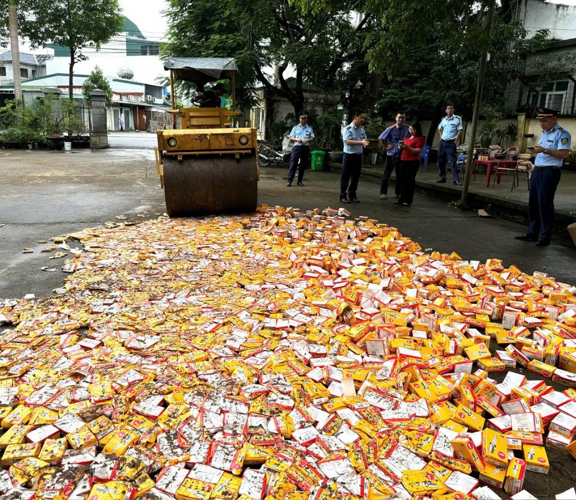 Quá trình tiêu hủy được thực hiện dưới sự giám sát của các đơn vị nghiệp vụ thuộc Cục Quản lý thị trường tỉnh Quảng Ninh và cơ quan chức năng có liên quan, đảm bảo an toàn và vệ sinh môi trường. Phương pháp tiêu hủy là dùng xe lu lớn cán nát để phá hủy hoàn toàn các sản phẩm giả.
