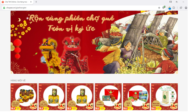 Nắm bắt được tâm lý của khách hàng, gian hàng Chợ Tết online được trang trí ngập tràn sắc xuân với nhiều sản phẩm mẫu mã đa dạng, phong phú và chất lượng. Tất cả đều được sắp xếp gọn gàng, ngăn nắp theo từng nhóm ngành hàng, giúp người dùng có thể dễ dàng tìm kiếm và chọn lọc những mặt hàng cần mua.
