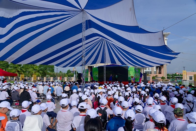| Sự kiện hưởng ứng Thế Giới 5/6/2023 tại huyện Bàu Bàng, tỉnh Bình Dương đã thu hút sự tham gia của hơn 1.000 người, đặc biệt là các em học sinh tại địa phương. |