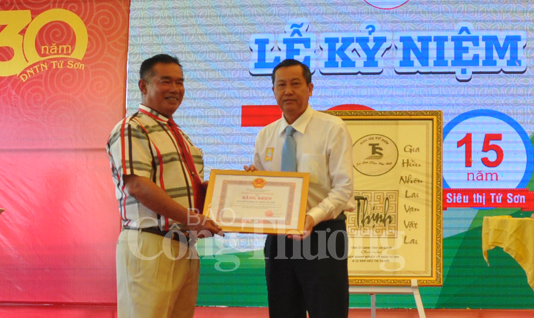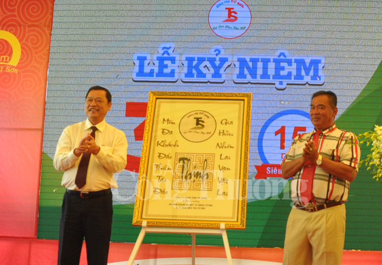 | Bà Lê Việt Nga (phải) chúc mừng và hy vọng Tứ Sơn sẽ tiếp tục tham gia tích cực vào CVĐ |