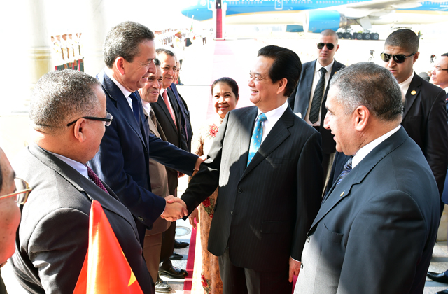 Lãnh đạo Algeria đón đoàn Chính Phủ Việt Nam, do Thủ tướng Nguyễn Tấn Dũng dẫn đầu. Ảnh: TTCP |