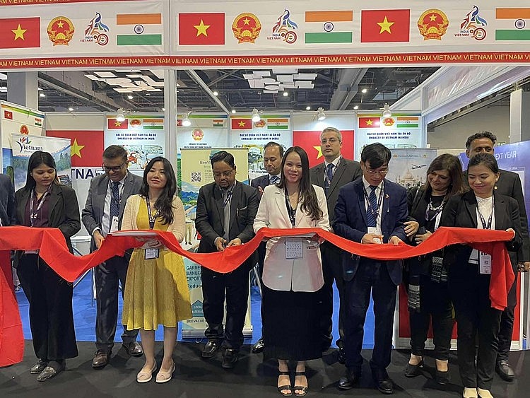 Tiếp tục các hoạt động xúc tiến thương mại nhân dịp kỷ niệm 50 năm quan hệ ngoại giao Việt Nam - Ấn Độ, ngày 8/12, Thương vụ - Đại sứ quán Việt Nam tại Ấn Độ đã tổ chức khai trương khu gian hàng Việt Nam tại Hội chợ dệt may Nam Á (Intex South Asia) tại trung tâm triển lãm Pragati Maidan, thủ đô New Delhi, Ấn Độ.