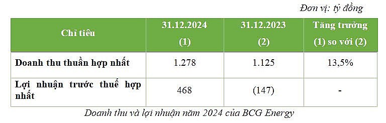 Kết quả năm 2024, lợi nhuận trước thuế hợp nhất của BCG Energy đạt 468 tỷ đồng, tăng trưởng ngoạn mục so với mức lỗ 147 tỷ đồng năm 2023. Lợi nhuận của BCG Energy tăng trưởng mạnh bởi tính hiệu quả trong việc quản lý chi phí tài chính, đặc biệt là sự giảm mạnh chi phí lãi vay, đồng thời chi phí quản lý doanh nghiệp cũng được tối ưu hóa so với cùng kỳ.
