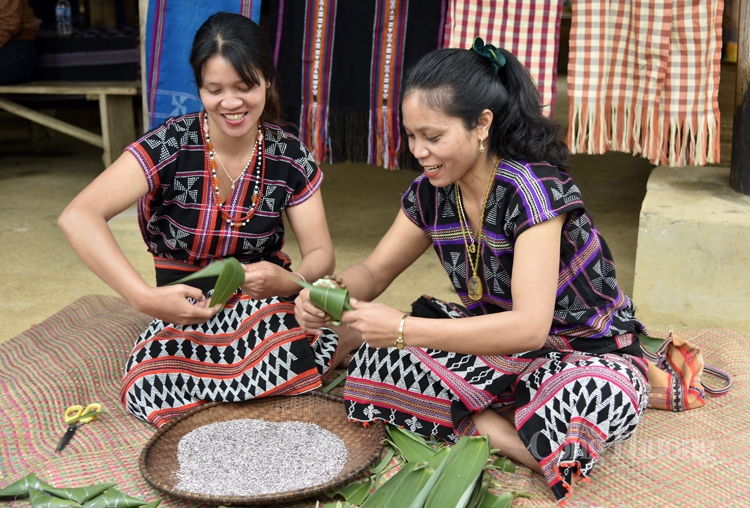 | Phụ nữ Tà Ôi đều thành thạo làm bánh a quát |