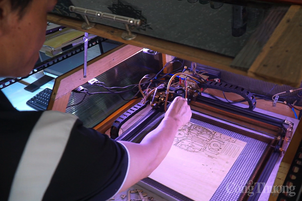 Mới đầu, anh Tâm thử nghiệm khắc hoa văn, làm đồ lưu niệm trên gỗ. Sau đó, cải tiến, nâng cấp để cắt được ván Balsa ráp thành ô tô mô hình. Khi “nhập giới”, anh nhận thấy có quá ít bản vẽ miễn phí, đa phần người dùng đều tự thiết kế hoặc bỏ tiền mua bản thiết kế có sẵn, hoặc đặt bản thiết kế riêng, sau đó mới cắt ghép, lắp ráp hoàn thiện mô hình.