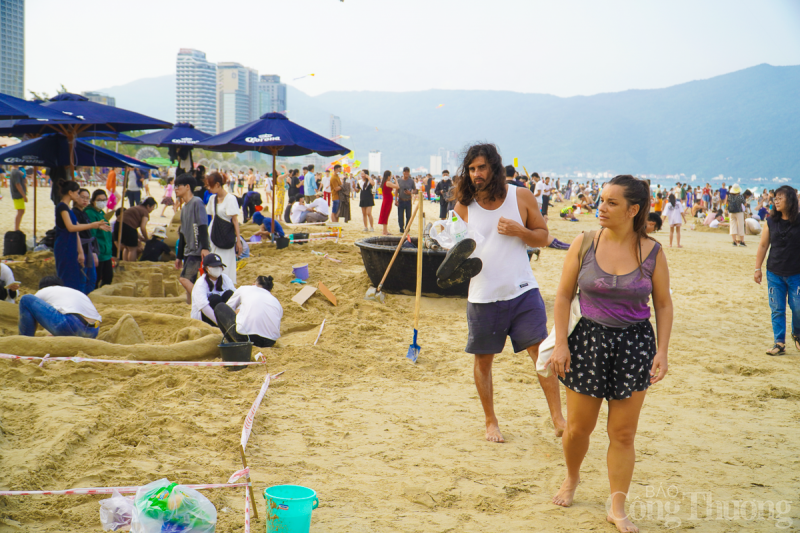 Hàng trăm người gồm sinh viên, du khách và người dân đã tham gia thi đắp tượng cát nghệ thuật với mục đích kêu gọi bảo vệ môi trường.