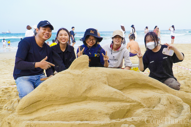 | Bằng cách sử dụng cát và nước biển, những bạn sinh viên, du khách đã tạo ra những tác phẩm tượng cát mang nhiều hình dáng độc đáo, ý nghĩa. |