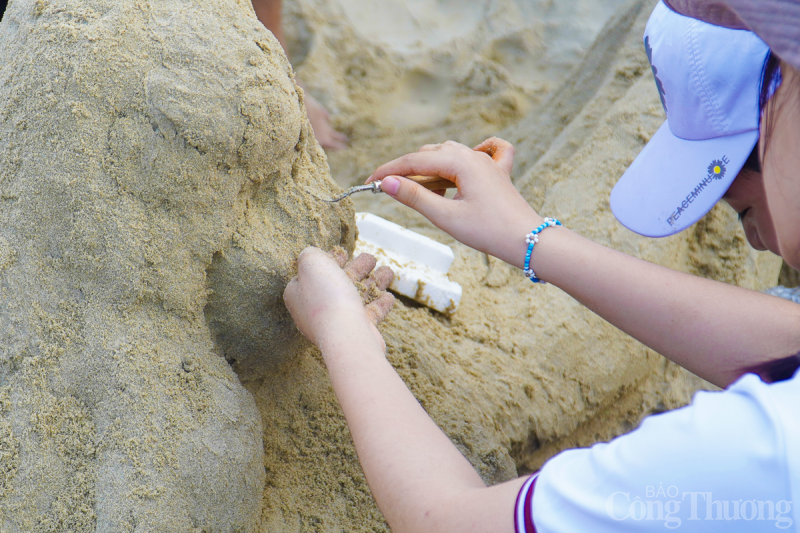 | Những bạn sinh viên say sưa đắp tượng, gửi gắm thông diệp chung tay bảo vệ môi trường biển. |