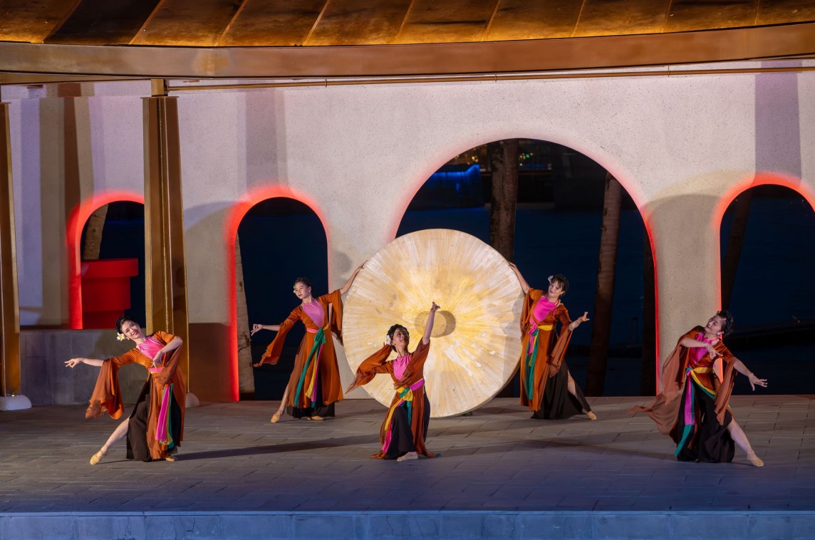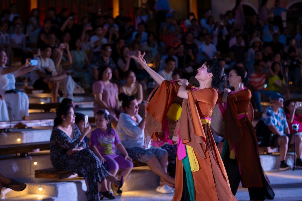 Âm nhạc biểu diễn cũng giới thiệu đến du khách các nghệ thuật sân khấu khác như hát chèo, hát chầu văn. Đặc biệt tiết mục cuối cùng Xin chào Việt Nam sẽ được hòa âm mới bằng sáo, nhị, bầu, tranh là 4 loại nhạc cụ truyền thống kết hợp cùng múa áo dài và nón lá.
