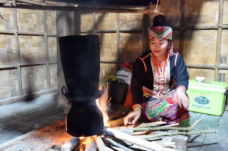 | Đồ xôi làm bánh trong lễ Tết dân tộc Khơ Mú |