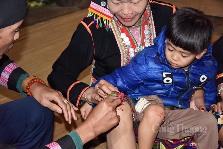 | Chủ nhà bôi tiết gà lên đầu gối của những thành viên trong gia đình |