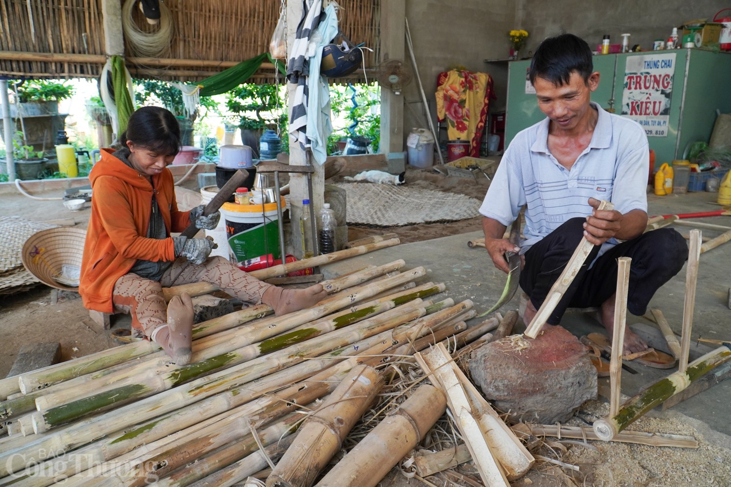 Vợ chồng anh Trương Văn Trung, chị Trương Thị Bích Kiều là một trong số ít các hộ gia đình ở đây còn duy trì làm nghề này. “Nhờ vào các đơn đặt hàng cho các khu du lịch và xuất khẩu sang các nước, chúng tôi mới bám trụ được với nghề”, chị Kiều nói.