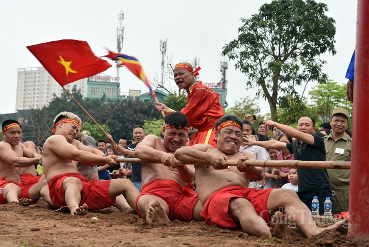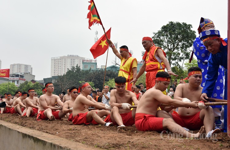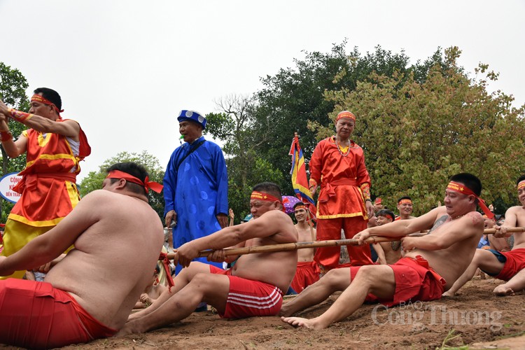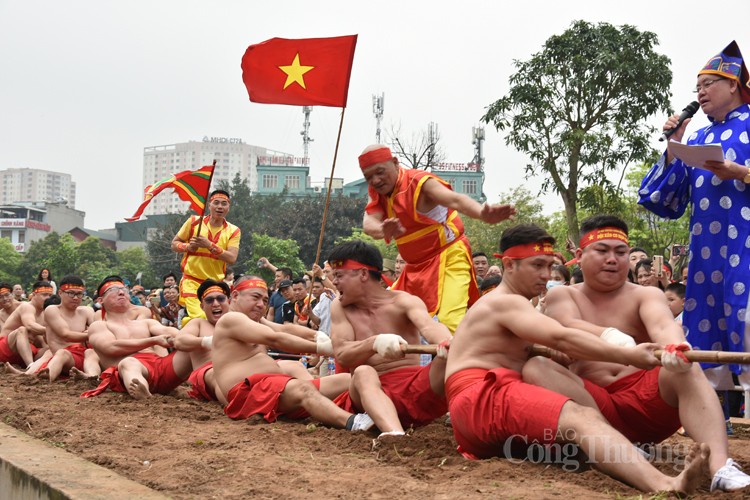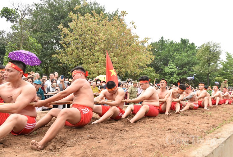 | Cộng đồng kéo co nằm của thôn Phú Hào, huyện Nam Trực, tỉnh Nam Định tham gia kéo co tại đền Trấn Vũ |