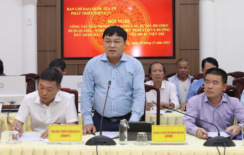 Ông Nguyễn Văn Tình – Phó Giám đốc Ban QLDA các công trình điện miền Trung (CPMB): Các dự án trên có quy mô lớn, tính chất quan trọng. Trong đó Trạm biến áp 220kV Nghĩa Lộ có quy mô xây dựng trạm biến áp mới, công suất 250MVA và có dự phòng đất cho lắp máy biến áp 220kV thứ hai trong tương lai. Số ngăn lộ phía 220kV là 10 ngăn, số ngăn lộ phía 110kV là 19 ngăn lộ. Xây dựng mới tuyến đường dây mạch kép 220kV dài 92,62 km, đấu nối từ ngăn lộ 220kV TBA 220kV Nghĩa Lộ tới TBA 500kV Việt Trì.