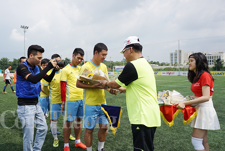 | Đại diện Ban tổ chức tặng hoa cho đội bóng |