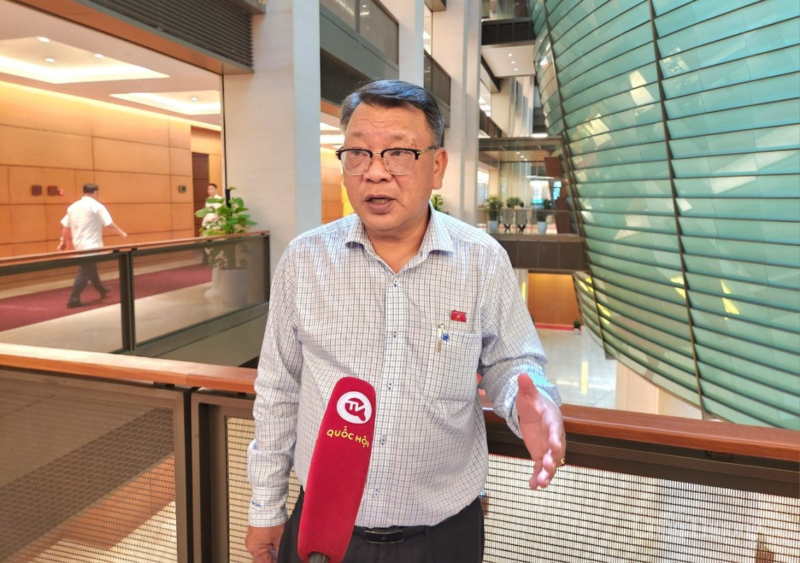 | Đại biểu Nguyễn Tạo chia sẻ với phóng viên bên hành lang Quốc hội. (Ảnh: Thu Hường) |