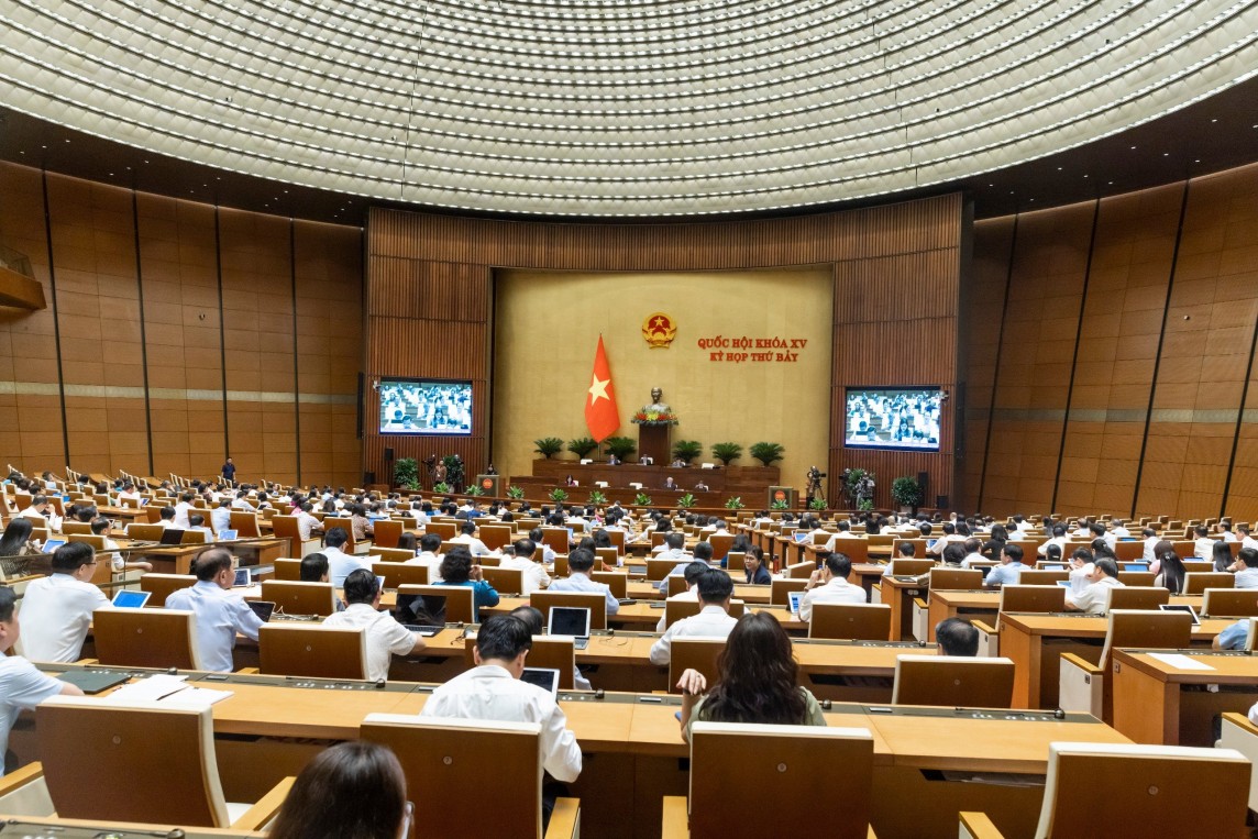 | Quốc hội thảo luận tại hội trường về dự án Luật Tổ chức Tòa án nhân dân sửa đổi (Ảnh: quochoi.vn) |