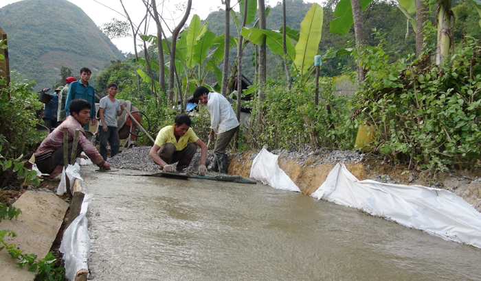 | Người dân xã Bản Giang làm đường giao thông nông thôn |