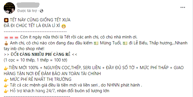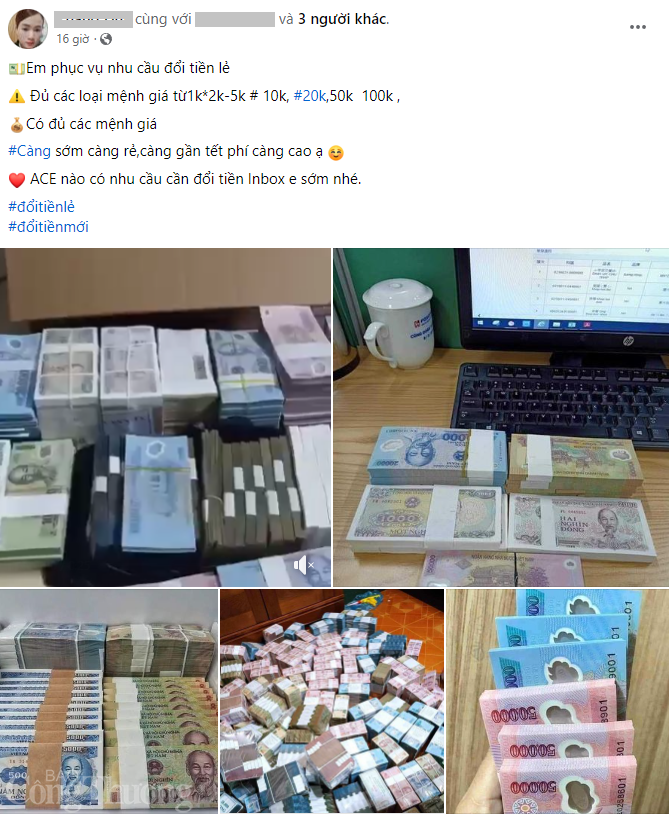 | Dịp cận Tết Nguyên đán, trên các trang mạng xã hội xuất hiện tràn lan những lời mời chào đổi tiền lẻ, tiền mới |