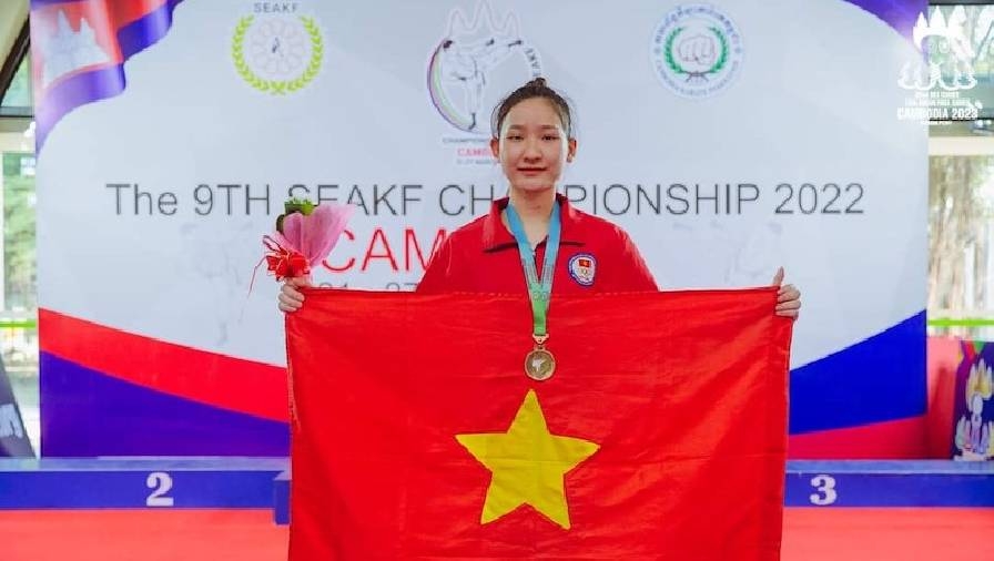 | VĐV Hoàng Thị Mỹ Tâm giành huy chương vàng tại giải Vô địch Karate Đông Nam Á 2022 ở nội dung đối kháng với hạng cân 55kg |