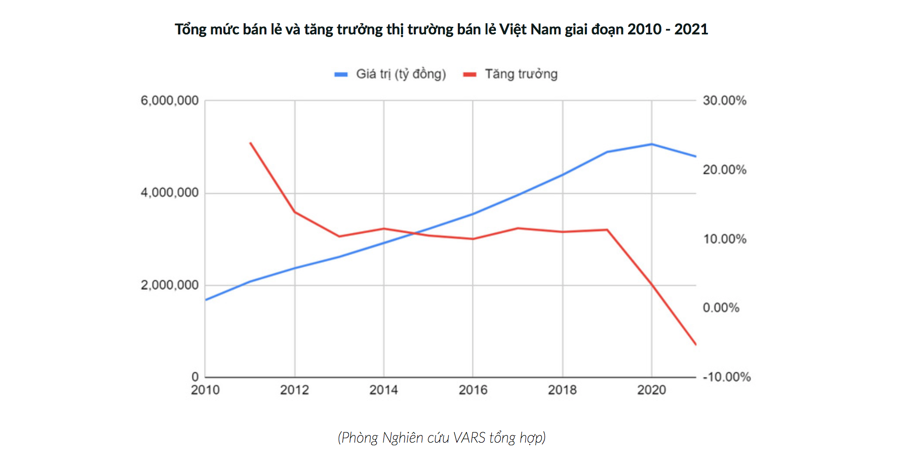 Bán lẻ là một trong những ngành kinh tế năng động nhất của Việt Nam, đã duy trì tốc độ tăng trưởng hàng năm ở mức hai chữ số trong hàng thập kỷ. Tháng 4/2022, tổng mức bán lẻ Việt Nam tăng 12,1% so với cùng kỳ 2021 - là kết quả tích cực so với mức giảm 3,8% năm 2021 do ảnh hưởng bởi dịch bệnh.