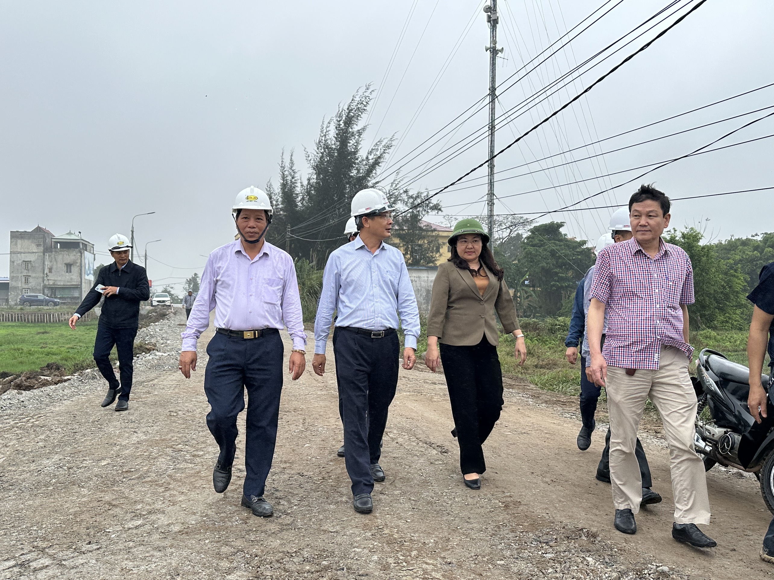| Lãnh đạo UBND tỉnh Nam Định và lãnh đạo EVNNPT kiểm tra tiến độ thi công đường dây 500kV mạch 3 đoạn qua tỉnh Nam Định |