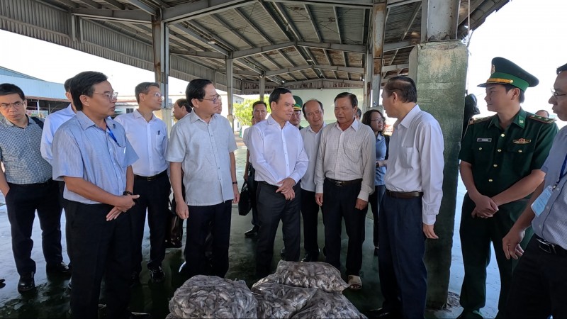 | Phó Thủ tướng Chính phủ Trần Lưu Quang đi khảo sát công tác triển khai thực hiện IUU tại cảng cá Cát Lở, thành phố Vũng Tàu |