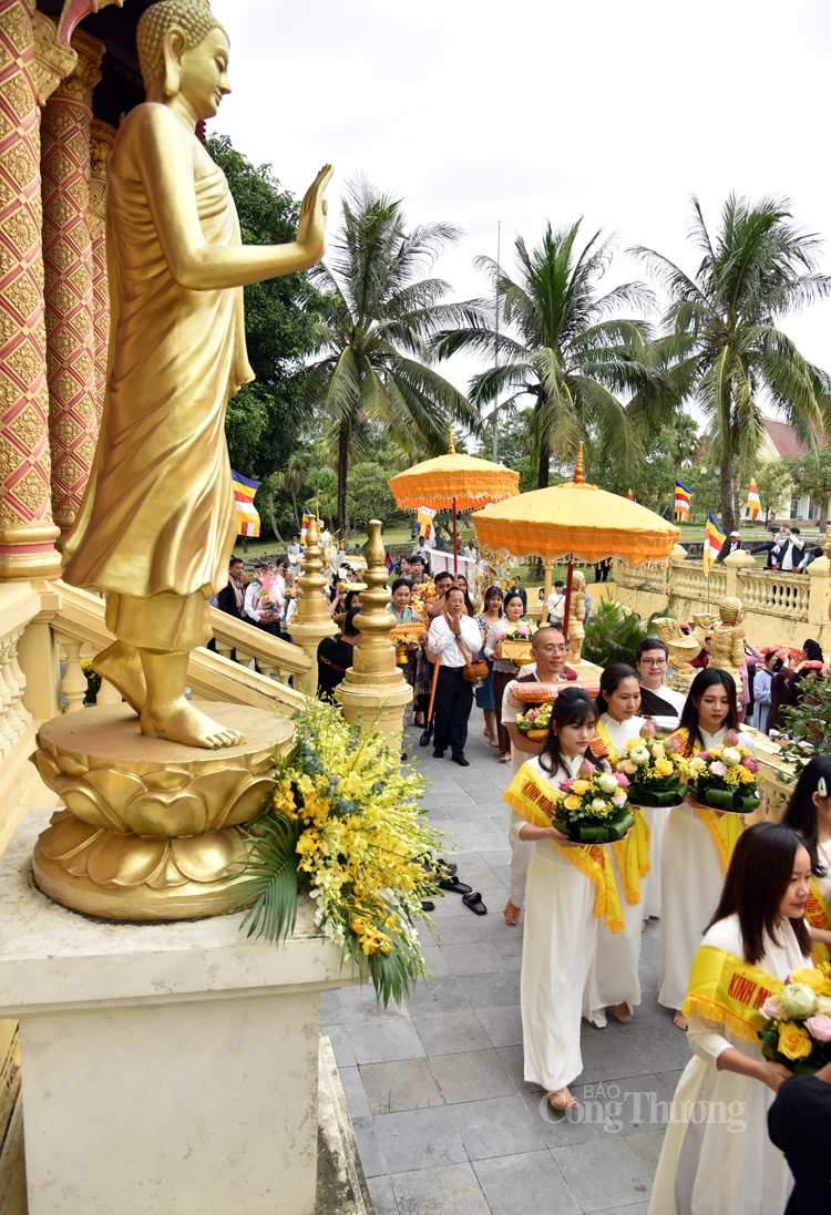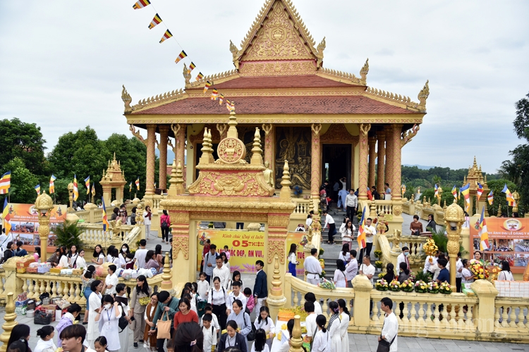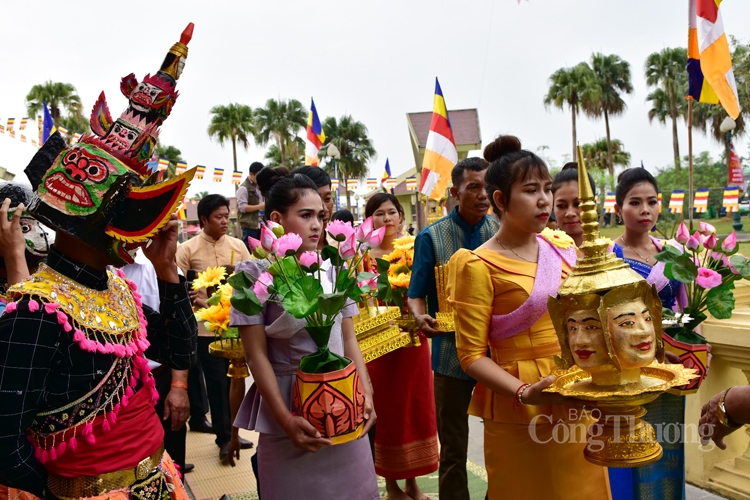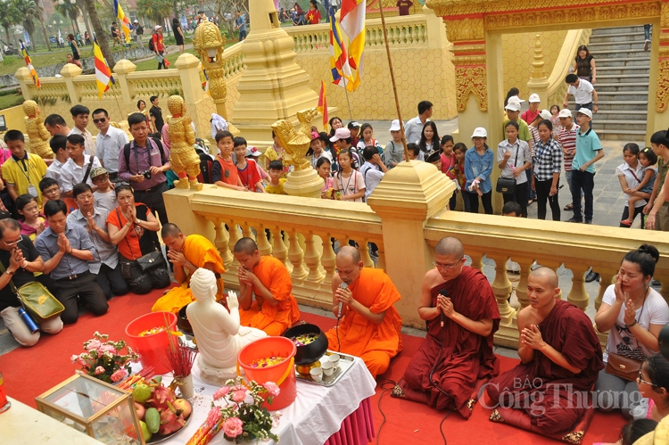 | Các nhà sư, tăng ni phật tử cùng đồng bào đến chùa dự lễ hội Chol Chnam Thmay |