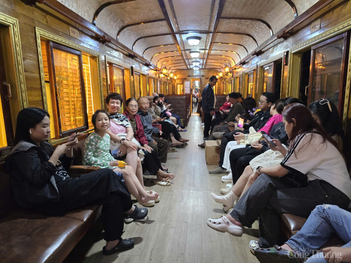 | Khách du lịch trải nghiệm chuyến tàu đêm tại ga Đà Lạt. Ảnh: Lê Sơn |