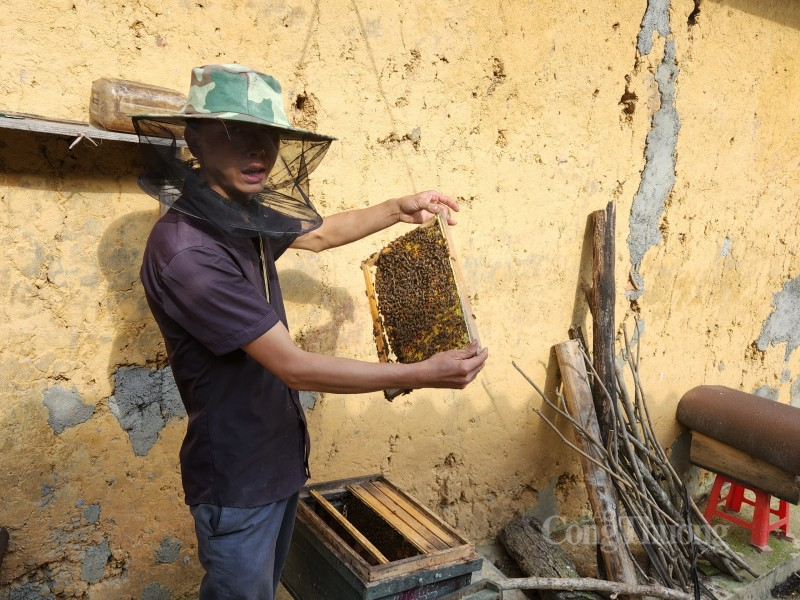 | Hộ gia đình anh Sùng Mý Thò ở Thôn Sán Sì Tủng doanh thu từ nuôi ong đạt khoảng 80 triệu đồng/năm. Ảnh: Thu Hường |