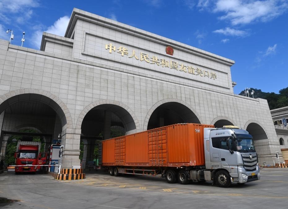 | Trong thời gian tới, Quảng Tây cam kết sẽ tối ưu hóa, khơi thông dòng chảy thương mại các cửa khẩu biên giới. Ảnh: Tân Hoa Xã |