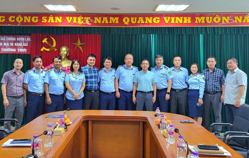 | Văn phòng Thường trực Ban Chỉ đạo 389 quốc gia và Tổng cục Quản lý thị trường chụp ảnh lưu niệm cùng đồng chí Đỗ Hồng Trung. (Ảnh Thu Hằng). |