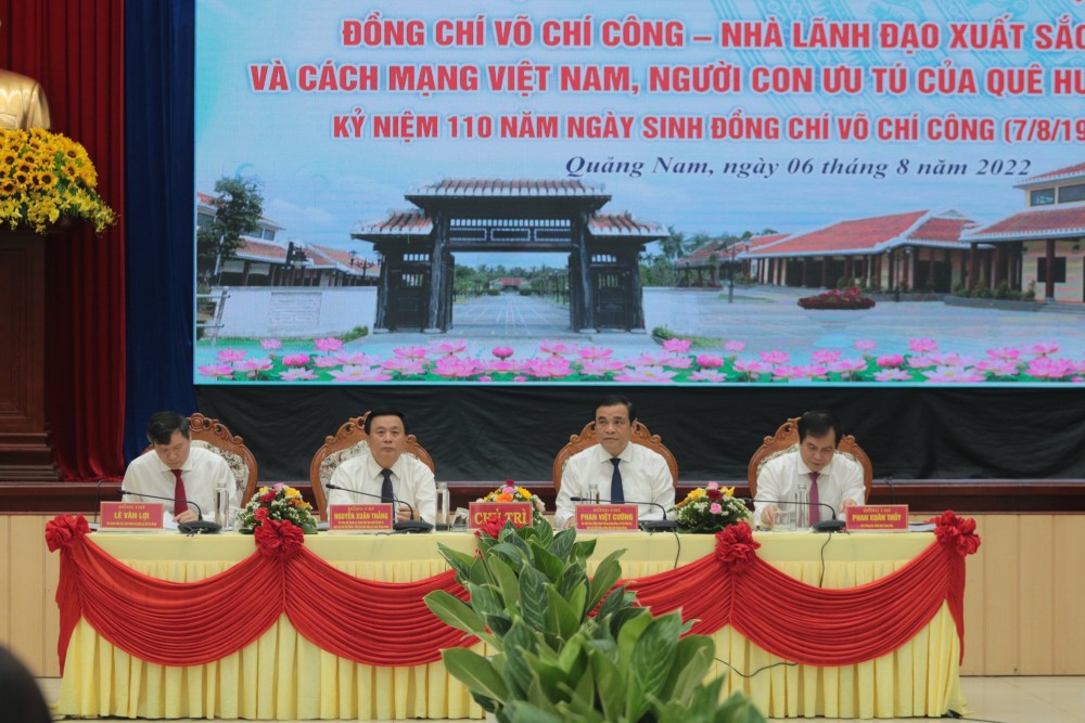Phát biểu tại Hội thảo, Bí thư Tỉnh ủy Quảng Nam Phan Việt Cường cho biết, đối với quê hương Quảng Nam, đồng chí Võ Chí Công để lại dấu ấn sâu sắc với vai trò của một nhà lãnh đạo xuất sắc, nhà thực tiễn cách mạng có tầm nhìn chiến lược, đã để lại cho Đảng bộ và nhân dân Quảng Nam những bài học quý giá, cổ vũ, động viên nhân dân vượt qua khó khăn, gian khổ, ra sức xây dựng quê hương, đất nước ngày càng giàu đẹp. Quảng Nam nay trở thành điểm sáng trong phát triển kinh tế - xã hội của khu vực miền Trung – Tây Nguyên, là một trong những tỉnh phát triển khá của cả nước. Đảng bộ và các tầng lớp nhân dân Quảng Nam luôn tự hào, ra sức học tập tấm gương của đồng chí Võ Chí Công và các bậc tiên liệt, phấn đấu đưa Quảng Nam trở thành tỉnh phát triển khá của cả nước vào năm 2030 như Nghị quyết Đại hội Đảng bộ tỉnh lần thứ XXII đã đề ra.