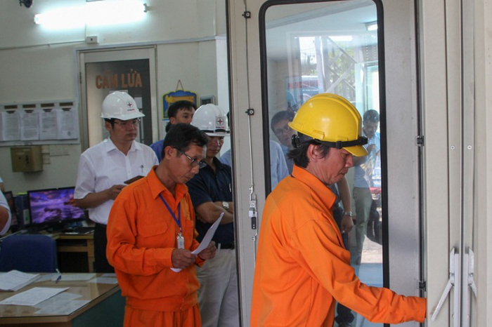 | Phó Tổng giám đốc EVNCPC Nguyễn Thành điều hành đóng điện |