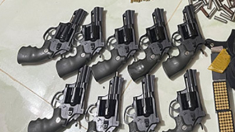 Sau khi bắt giữ, khám xét nơi ở của đối tượng, lực lượng công an thu giữ 9 khẩu súng. Trong đó, có 1 khẩu súng đã chế tạo xong, 8 khẩu súng khác đang trong quá trình hoàn thiện gắn kim hỏa, ống nòng và 100 viên đạn chì, đạn thể thao.