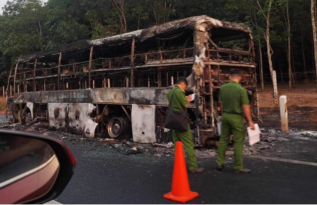 Ghi nhận ban đầu, vụ cháy không gây thiệt hại về người, toàn bộ chiếc xe bị trơ khung, nhiều tài sản của hành khách bị thiêu rụi
