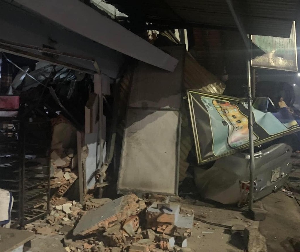 | Một phần nhà dân bị hư hỏng nặng sau vụ tai nạn (ảnh: Tuấn Nguyễn) |