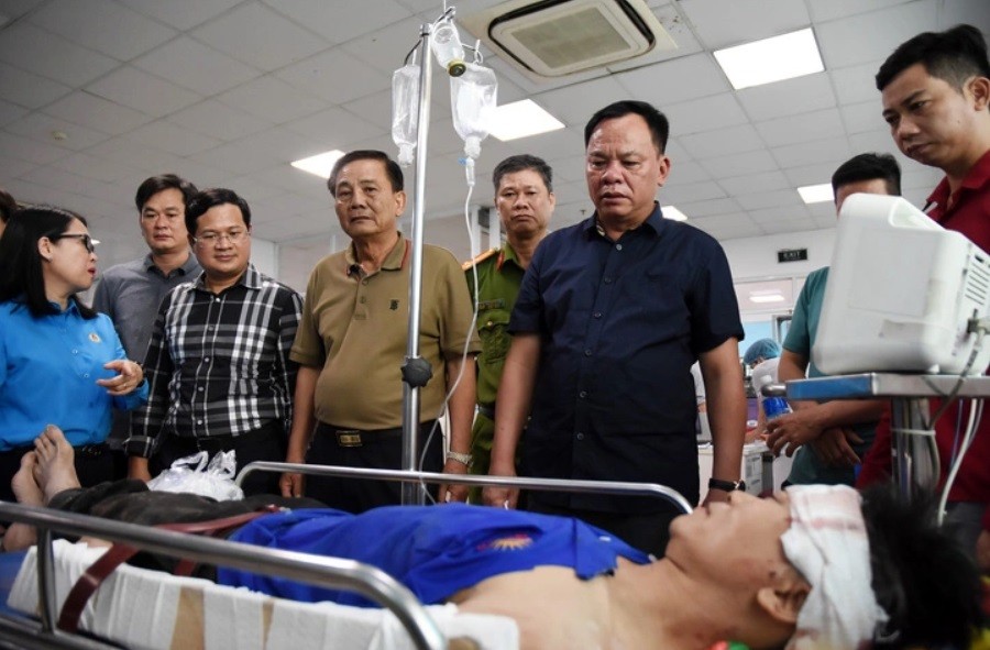 | Quyền Chủ tịch UBND tỉnh Đồng Nai Võ Tấn Đức đã trực tiếp đến bệnh viện thăm hỏi, động viên các nạn nhân và gia đình - Ảnh: Báo Đồng Nai |