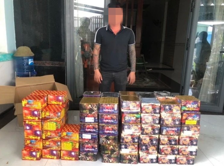Quá trình kiểm tra, phát hiện cả hai đang tàng trữ 6 hộp và 200 viên pháo hoa nổ do nước ngoài sản xuất (loại cấm sử dụng, lưu hành) với tổng trọng lượng khoảng 11kg.