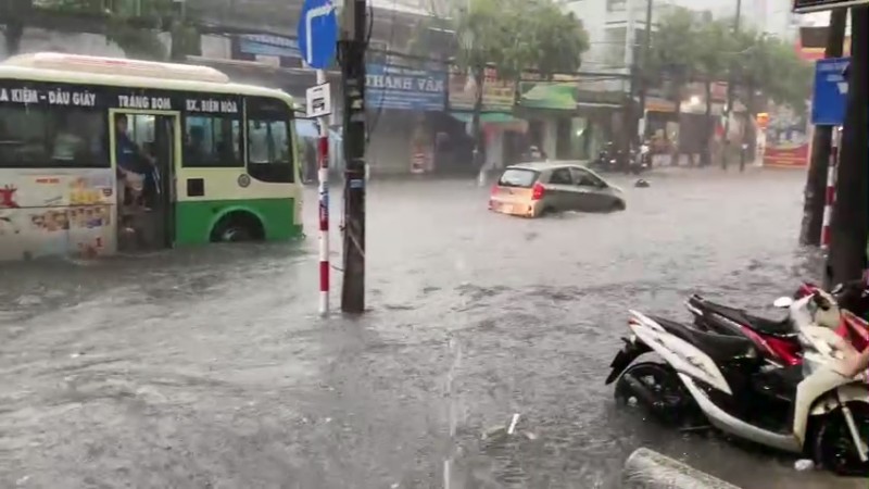 Chiều 8/5, một cơn mưa lớn “giải nhiệt” đổ xuống khu vực thành phố Biên Hòa, tỉnh Đồng Nai. Tuy nhiên, ngay sau khi mưa lớn, nhiều tuyến đường trên địa bàn TP. Biên Hòa đã bị ngập.