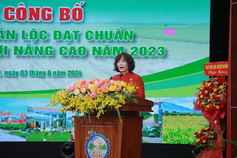 Phát biểu tại buổi lễ, bà Nguyễn Thị Cát Tiên, Chủ tịch UBND huyện Xuân Lộc cho biết đây là thành quả sau chặng đường 5 xây dựng nông thôn mới nói chung và 9 năm xây dựng nông thôn mới nâng cao nói riêng. Qua đó, thể hiện quyết tâm của lãnh đạo và chính quyền nhân dân huyện Xuân Lộc.